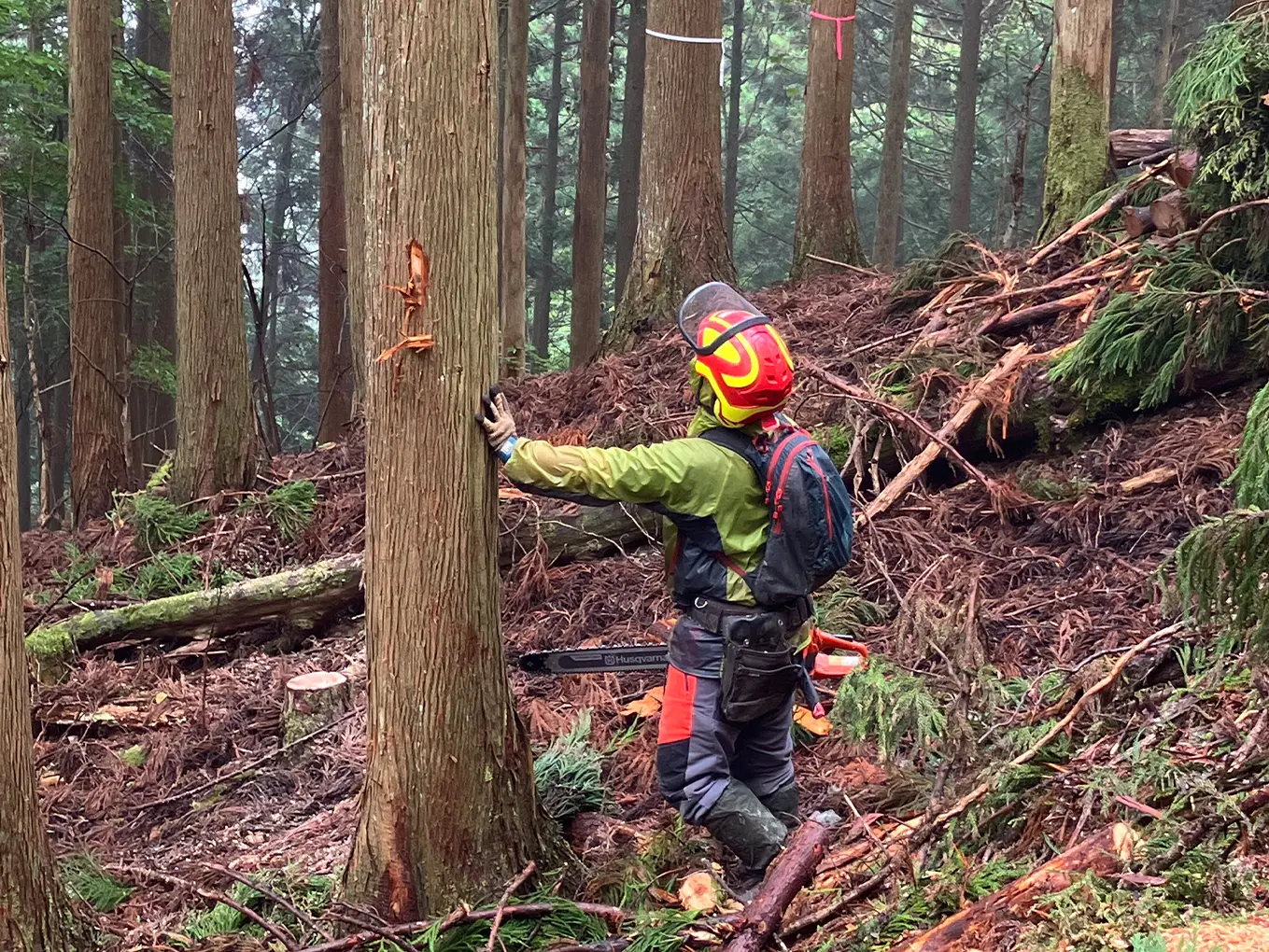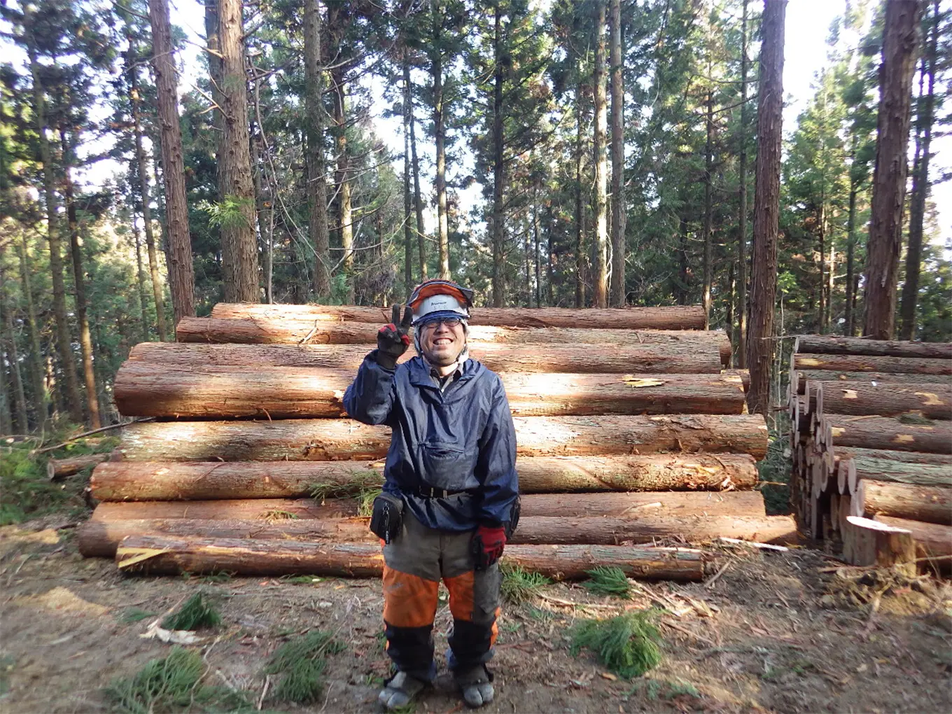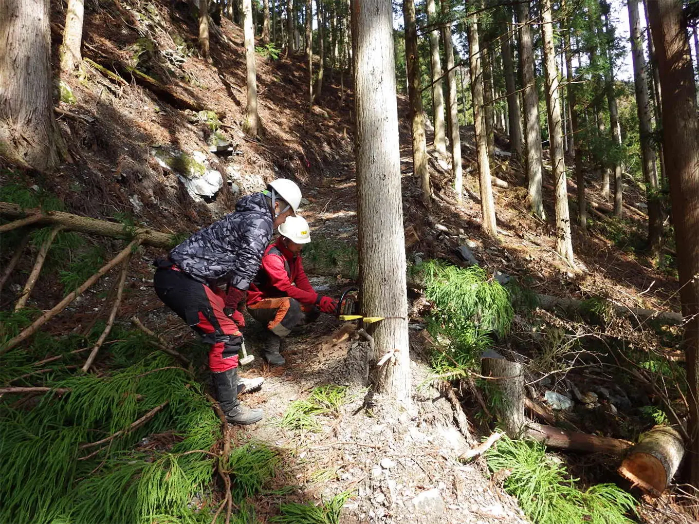 高性能林業機械を操り、作業道を利用して木材の伐採・搬出を行います。
